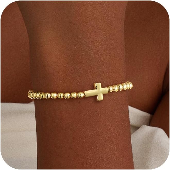 Gold/Silver Bracelets for Women Stackable 14K Gold/Silver Plated Stretch Bracelets Dainty Paperclip Cross Bow Charm Accessories Jewelry for Women Trendy