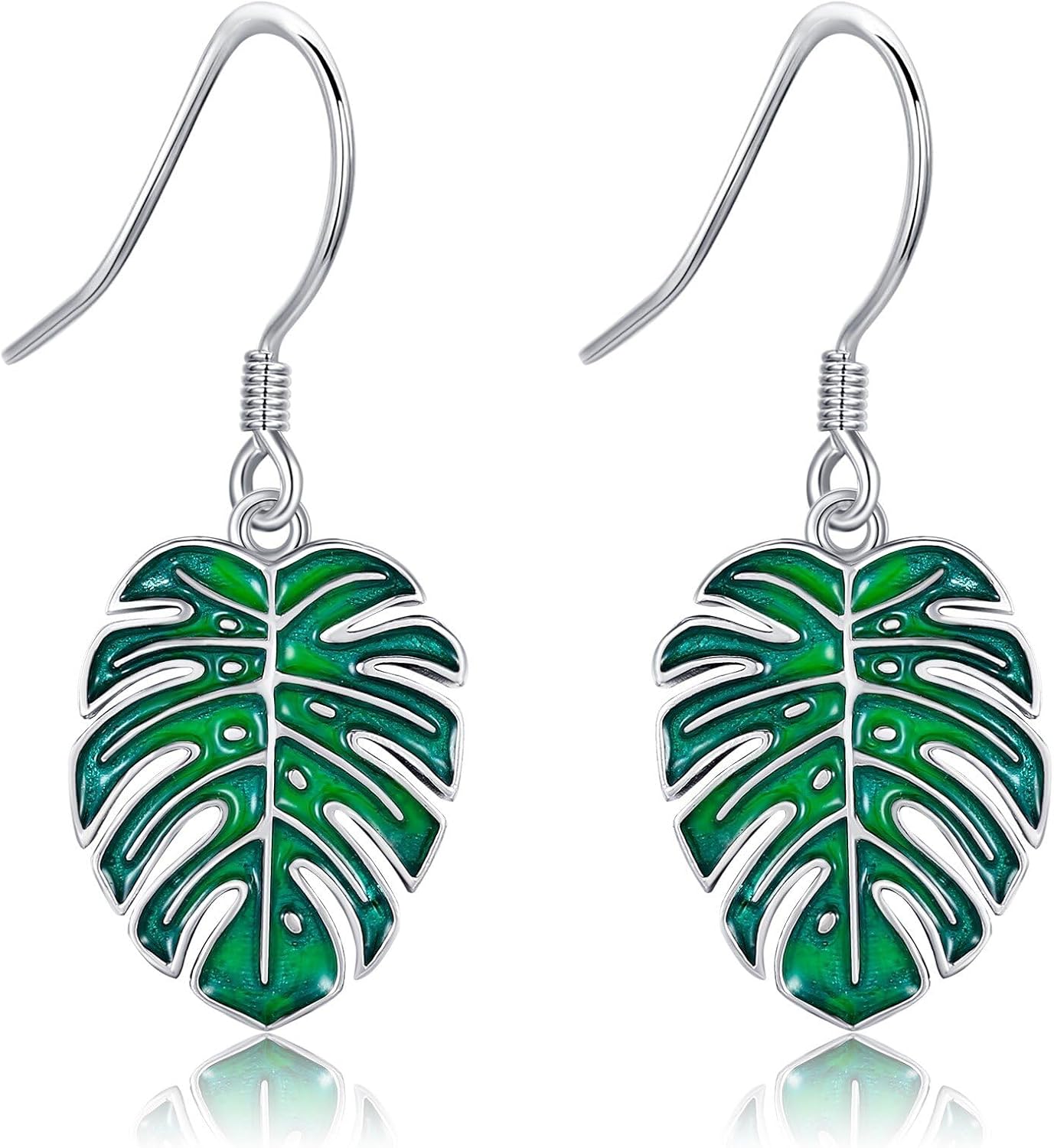 Monstera Earrings 925 Sterling Silver Monstera Plant Dangle Drop Earrings Jewelry Gift for Women Monstera Lovers