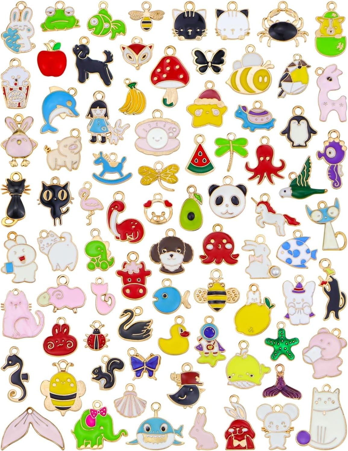 JIALEEY 80PCS Animal Charms, Gold Plated Enamel Charms Mixed Creatures Insects Birds Colorful Pendant DIY for Necklace Bracelet Jewelry Making and Crafting
