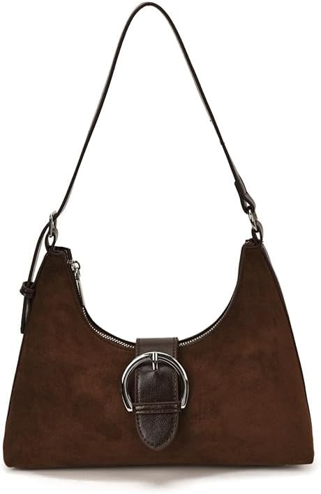 Vintage Mini Hobo Purse for Women Genuine Suede Leather Crescent Underarm Crossbody Shoulder Bag Work Travel Casual