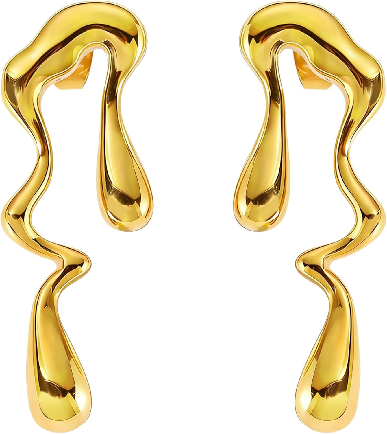 Irregular Liquid Metal Drop Earrings for Women, Asymmetrical Gold and Silver Dangle Earrings, Artistic Statement Fashion Jewelry Gift