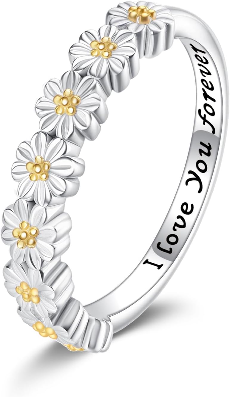 Daisy Flower Ring 925 Sterling Silver Daisy Jewelry Gifts for Women Lover