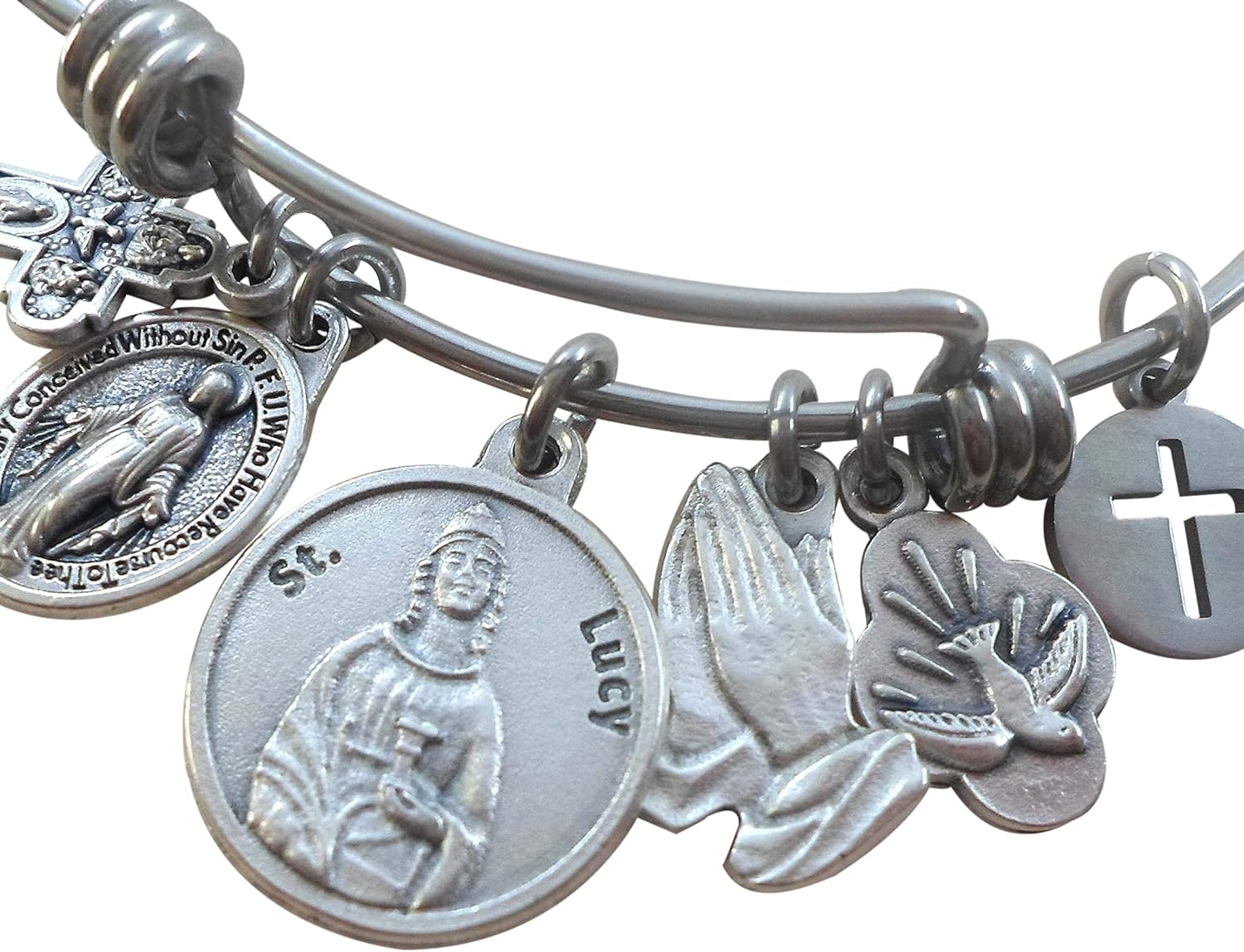 St. Lucy Prayer Bangle Bracelet, Patron Saint of Those With Eye Disorders, Get Well Prayer Gift, 4 Sizes Extra Small to Large