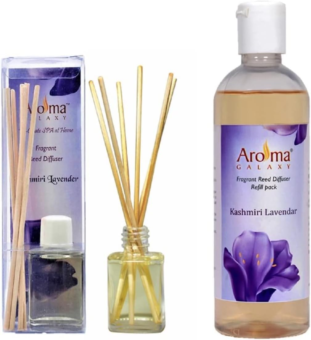 - Fragrance Description: This fragrance oil is infused with natural essential oils, including rich kashmiri lavender, bergamot, sandalwood and patchouli. The natural sedative nature of lavender is extracted from the plant so you can enjoy all the benefits of a calm, relaxed, and stress-free mind and body.; Made In India: Aroma Galaxy fragrance diffusers & refills are made in india