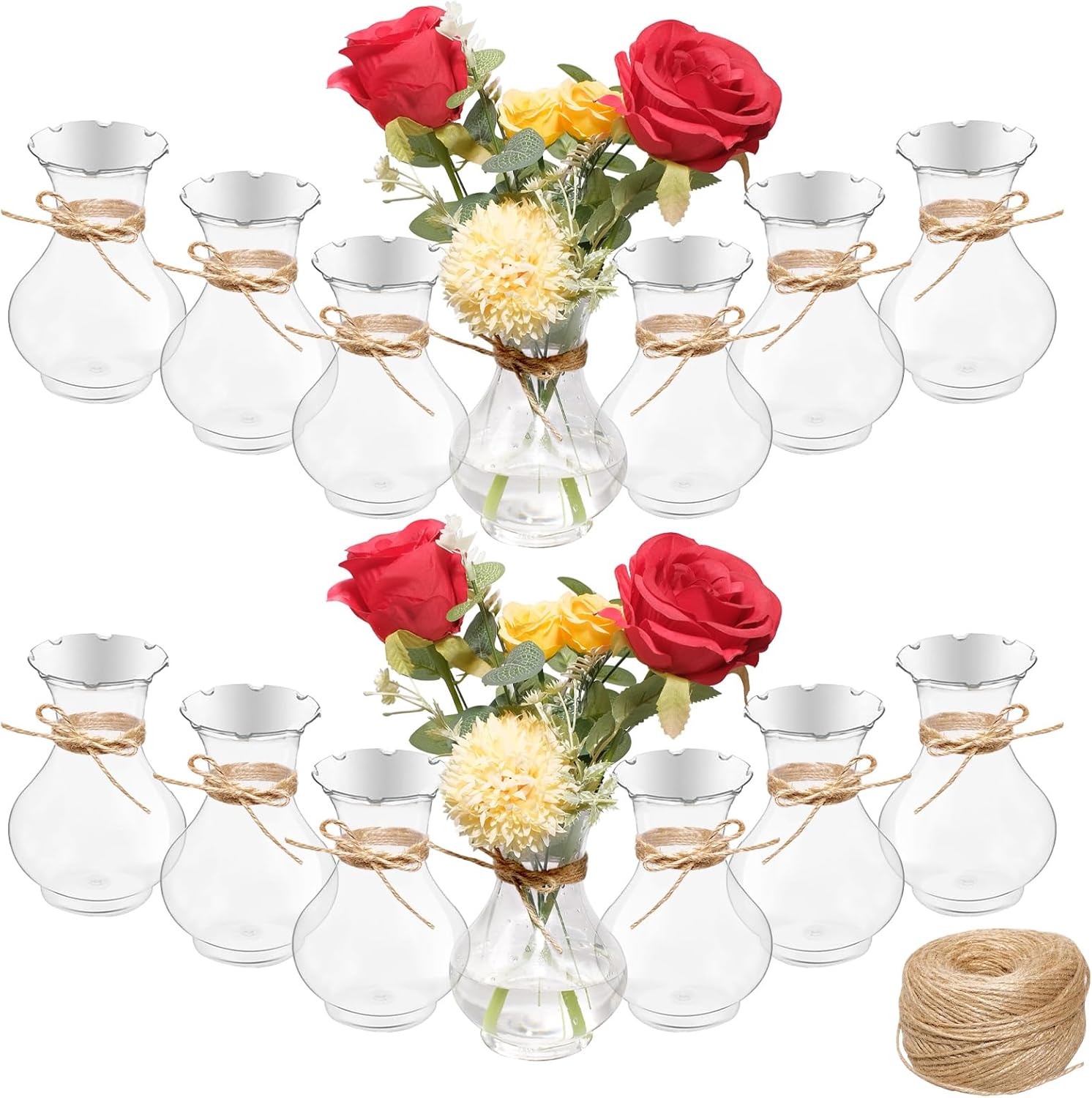 - Generous Quantity: the set of 14 plastic small vases and 328 ft Twine Ropes gives you a sufficient amount to decorate multiple spaces, allowing you to plant your favorite flowers and bulbs for an elegant home environment
