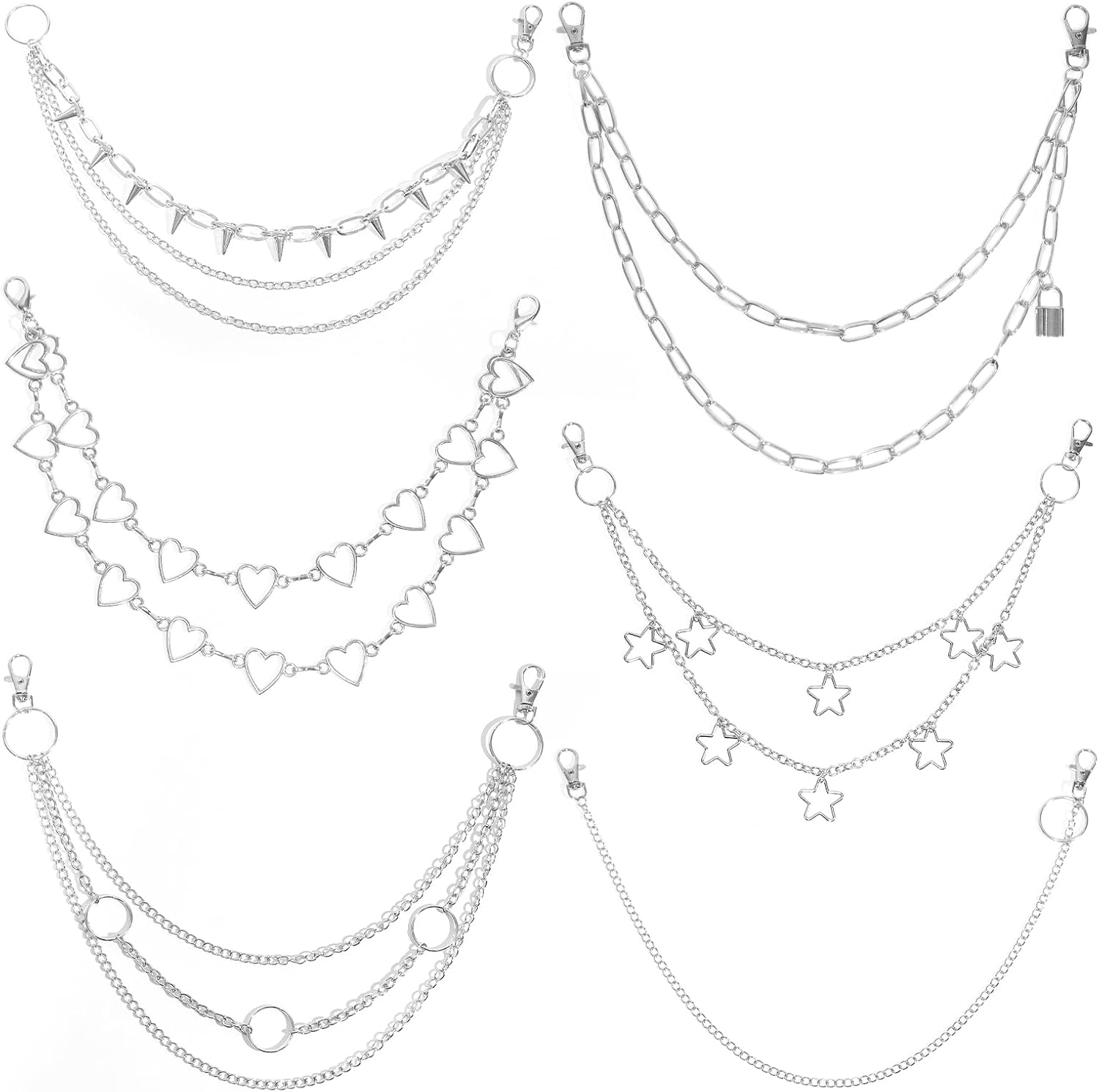 Silver Chain Belt, Jeans Pants Chains Pocket Punk Hip Hop Y2k Goth Accessories Metal Wallet Chain for Men Women