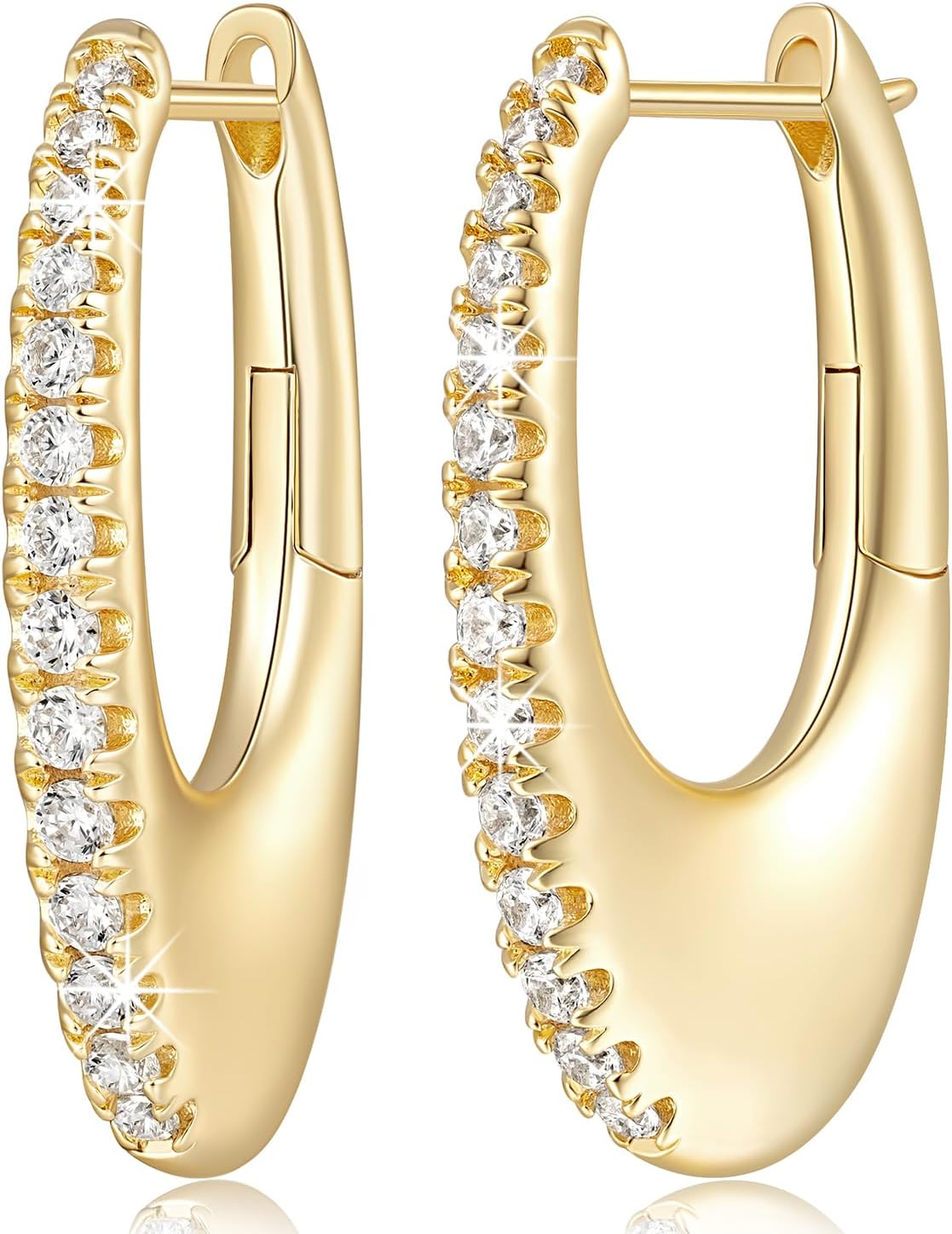 GIORGIA GIBBS Gold Hoop Earrings 14K Gold Earrings for Women with Cubic Zirconia Crescent Gently Hanging