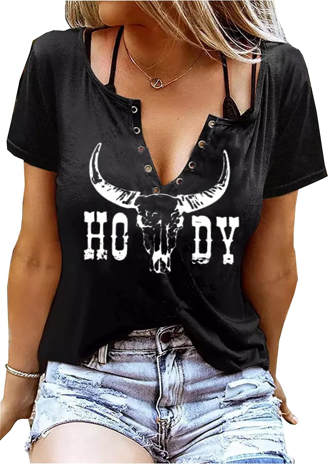 V-Neck Howdy Tshirt Women Western Country Cowboy Shirts Vintage Rodeo Cowgirl Tee Tops Leopard Honey Hat T-Shirt