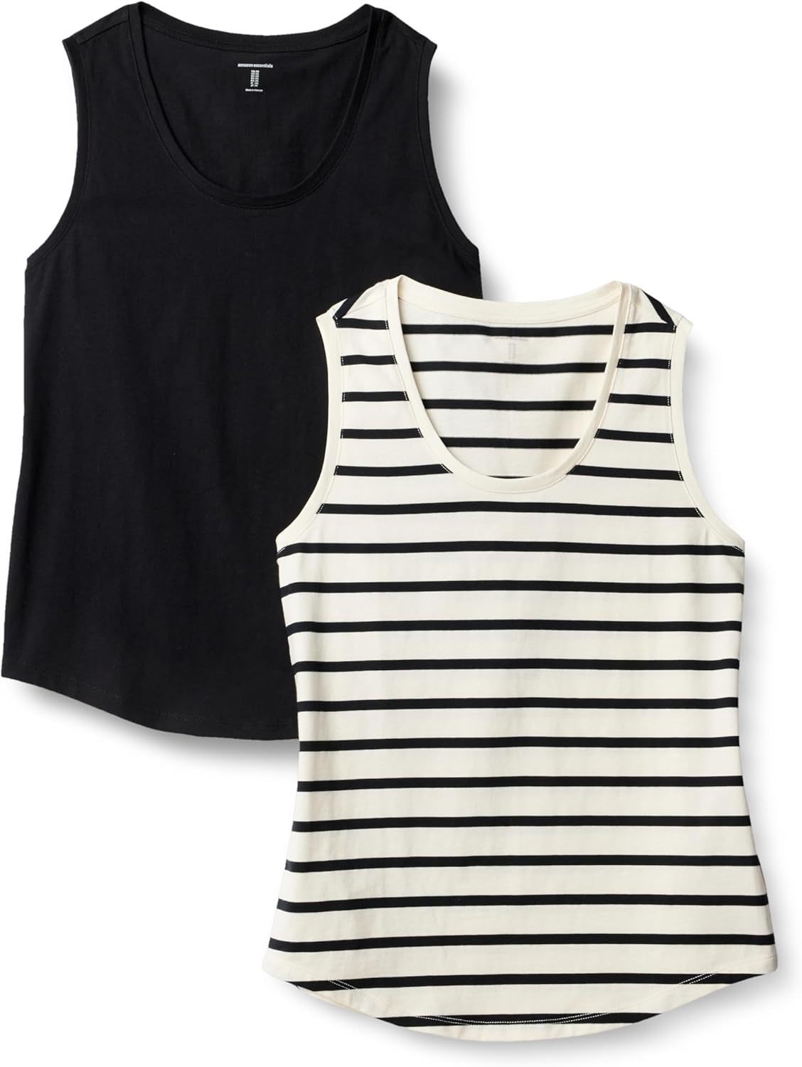 Amazon Essentials Women's Regular-Fit 100% Cotton Sleeveless Tank Top, Pack of 2