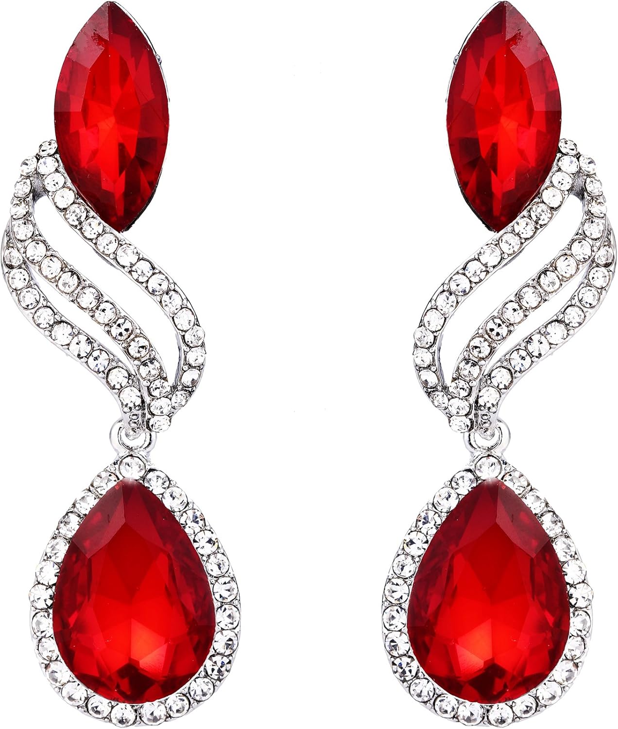 BriLove Women's Fashion Crystal Wedding Bridal Hollow Leaf Teardrop Dangle Earrings