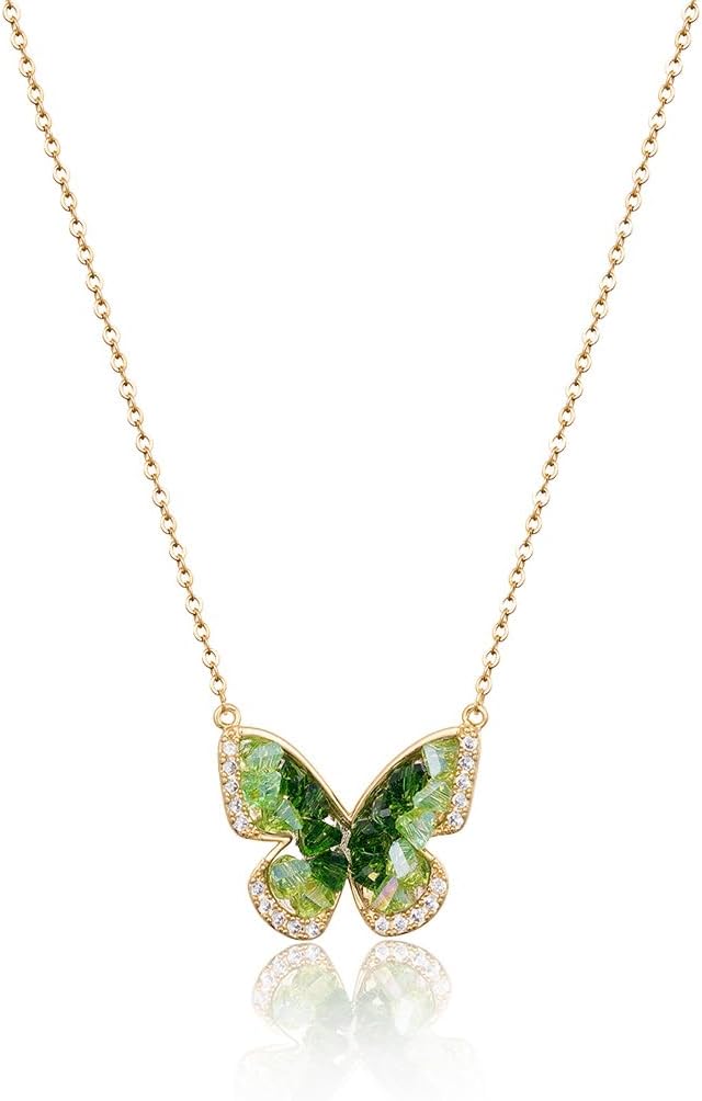 Stunning Green Crystal Butterfly Pendant Necklace, 18K Gold Plated Brass, Fairy-Inspired, Elegant Gold Necklace for Women