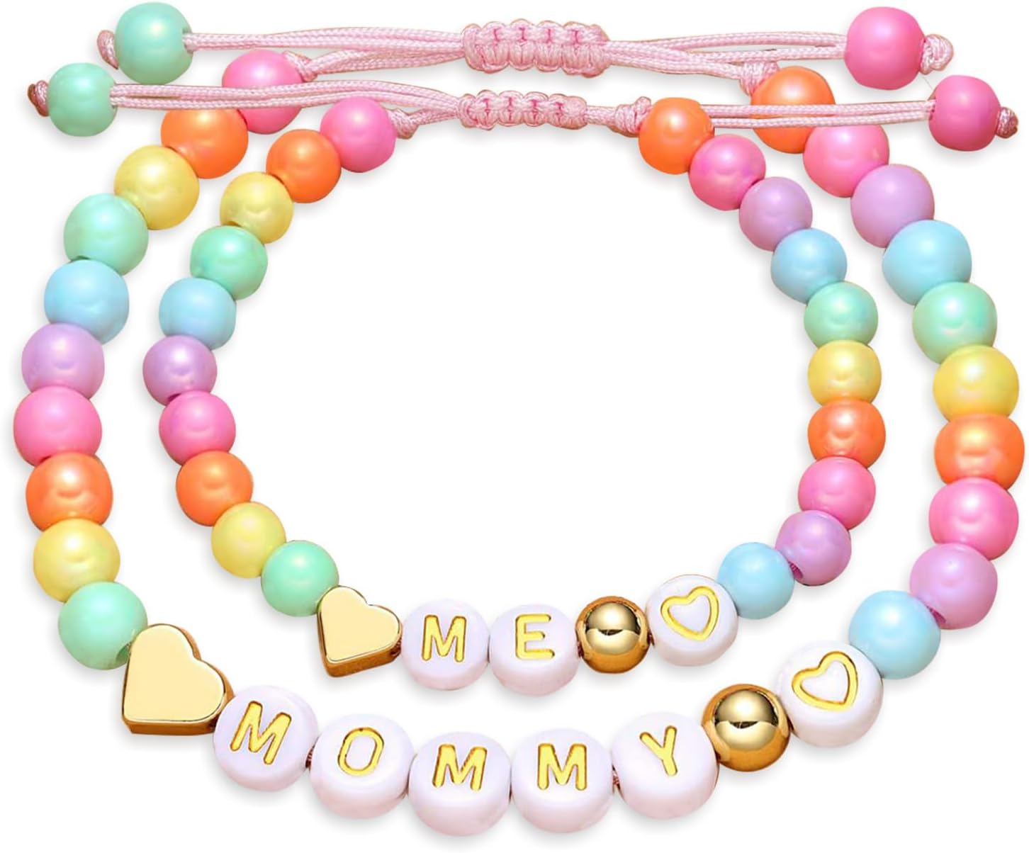 Mother Daughter Bead Bracelet Set for 2, Mommy and Me Matching Bead Bracelet, Mama and Mini Matching Heart Bracelets for Mom Daughter Valentines Mother's Day Gift
