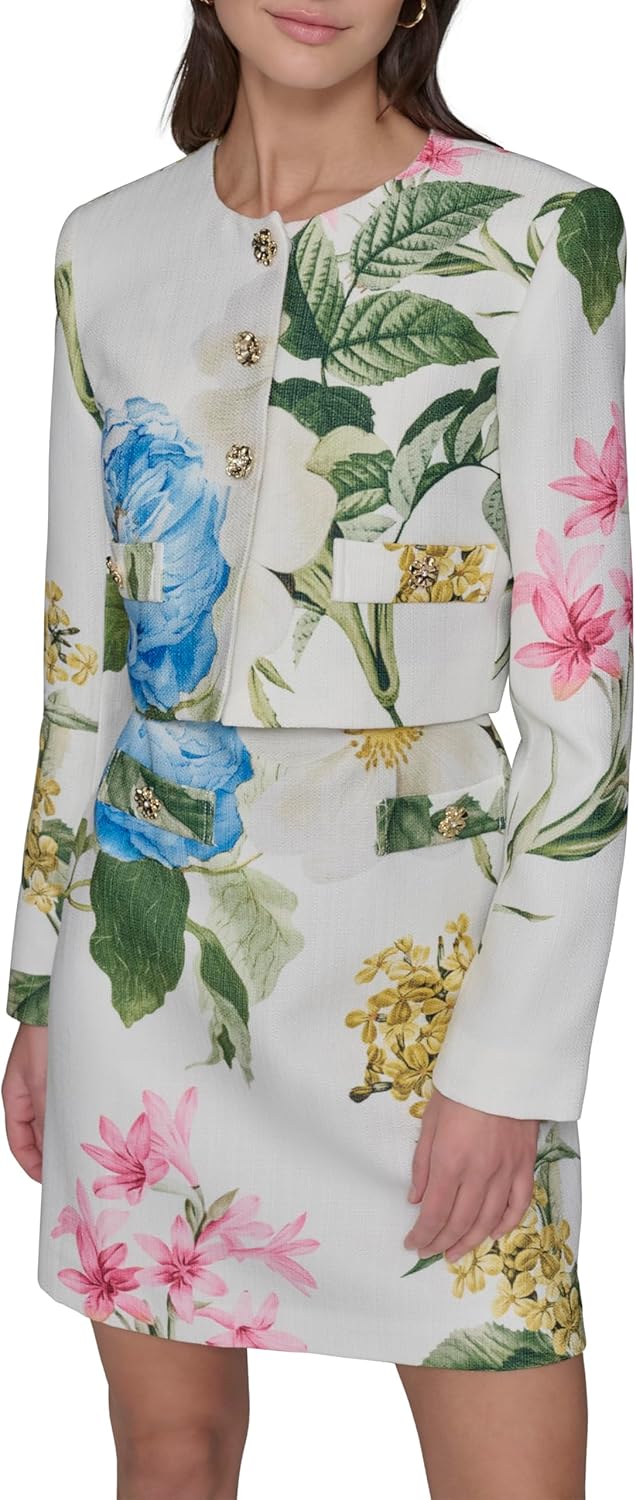 Karl Lagerfeld Womens Tailored Button Front Cropped Jacket