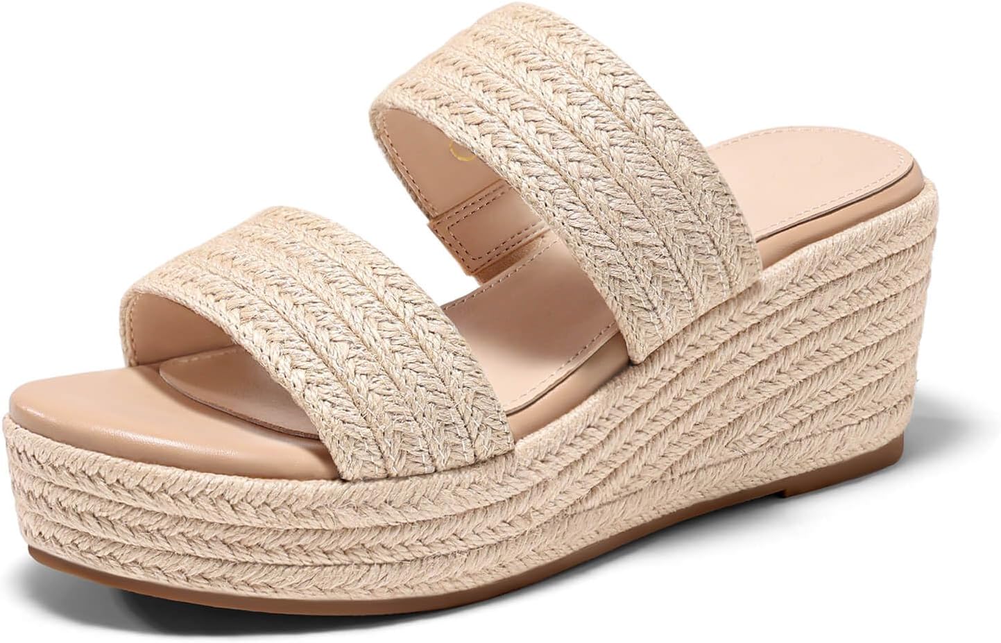 Coutgo Womens Platform Wedge Sandals Espadrille Raffia Heeled Slides Open Toe Two Band Summer Beach Vacation Shoes