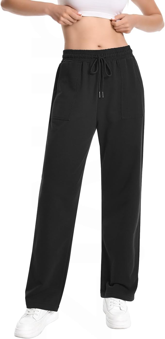 Auriviz Widen Waistband Sweat Pants for Women Exposed Pockets Lounge Sweatpants Straight Leg Pants 29’’ Inseam