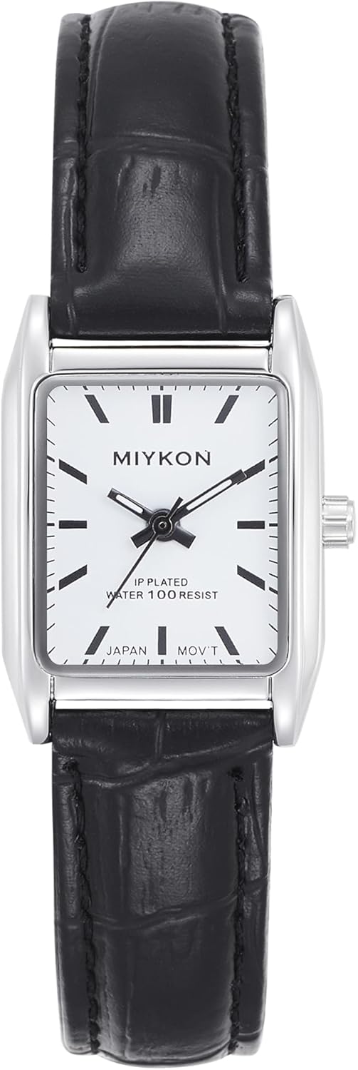 Miykon Dainty Vintage Tank Square Dress Watches for Women – Genuine Leather Band, Second Hand, Japanese Quartz, Water Resistant
