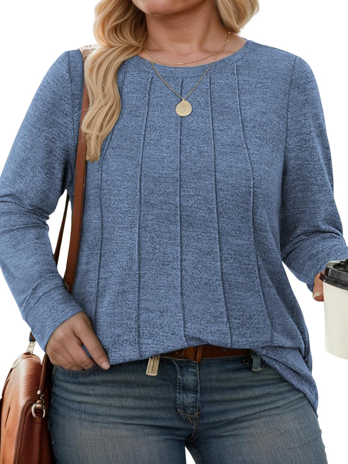VISLILY Womens-Plus-Size-Tops Dressy Long Sleeve Shirts Casual Crewneck Tunics Tees Trendy Pleated Comfy Blouses XL-5XL