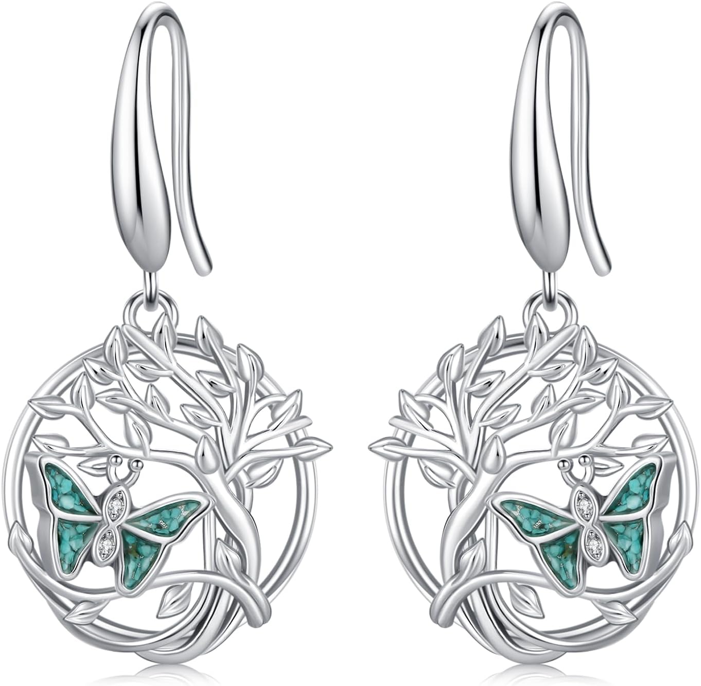 Tree of Life Earrings 925 Sterling Silver Hypoallergenic Turquoise Tree Butterfly Dragonfly Dangle Drop Earrings for Women Tree Jewelry Gifts