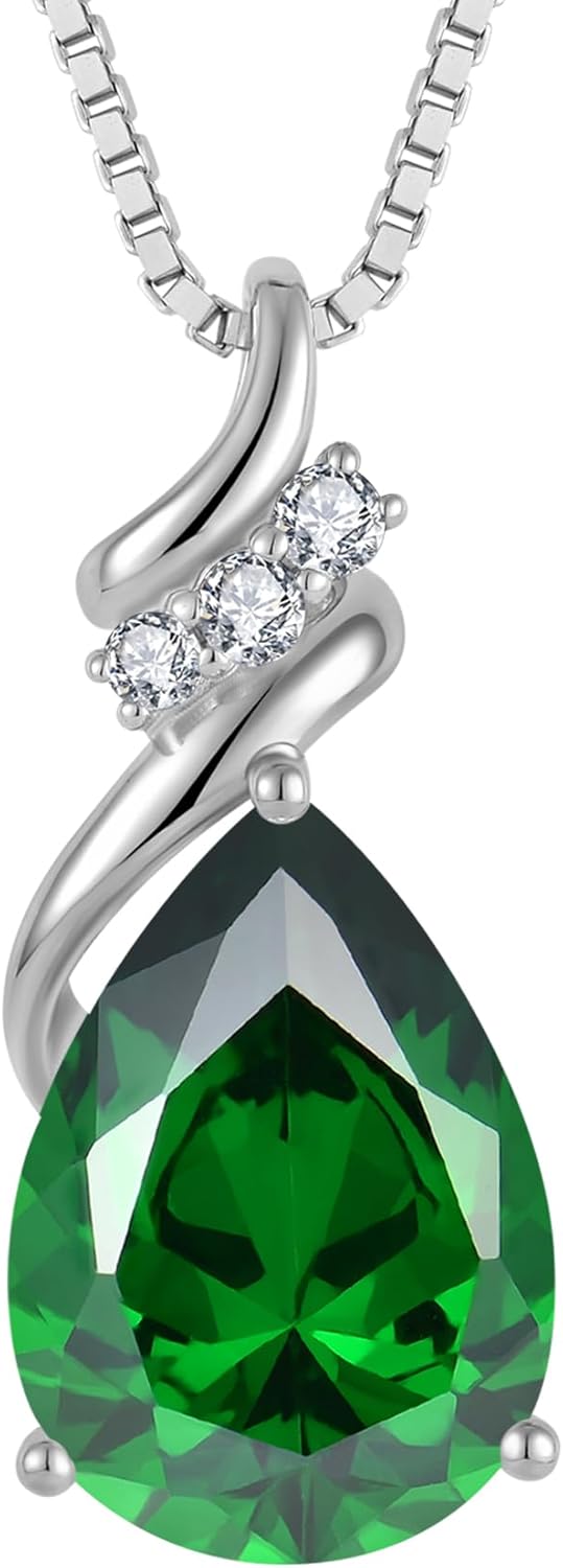 Teardrop Necklace 925 Sterling Silver Birthstone Pendant Necklace Created Gemstone Jewelry for Women