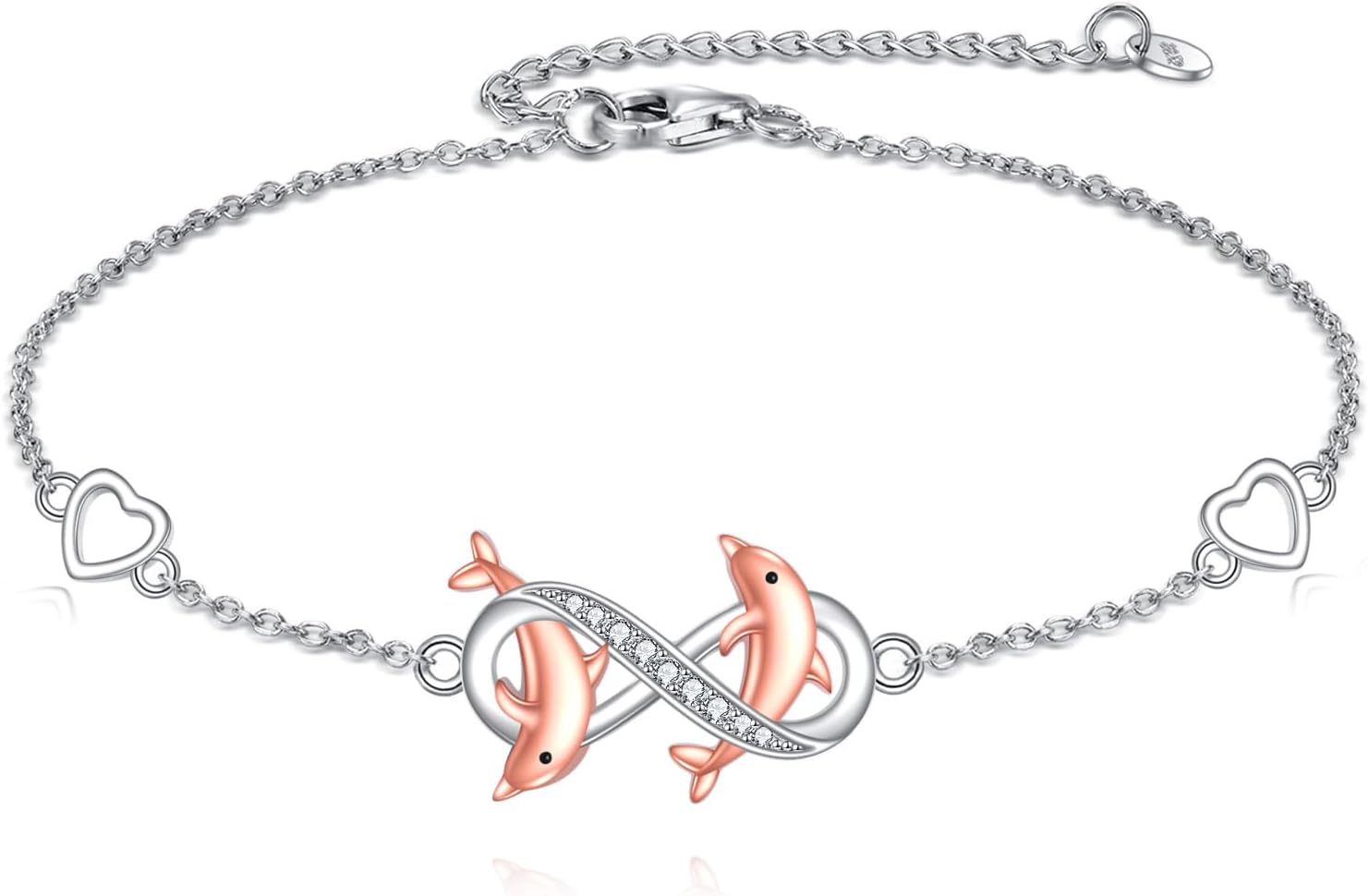 MONGAS Dolphin Bracelet 925 Sterling Silver Infinity Dolphin Bracelet Ocean Animal Jewelry Gifts for Women