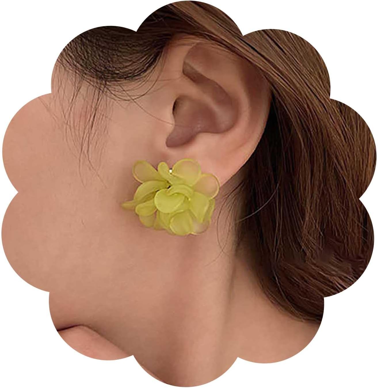 Boho Green Flower Stud Earrings Resin Floral Stud Earrings Acrylic Flower Earrings Flower Petal Earrings Camellia Floral Earrings Jewelry for Women
