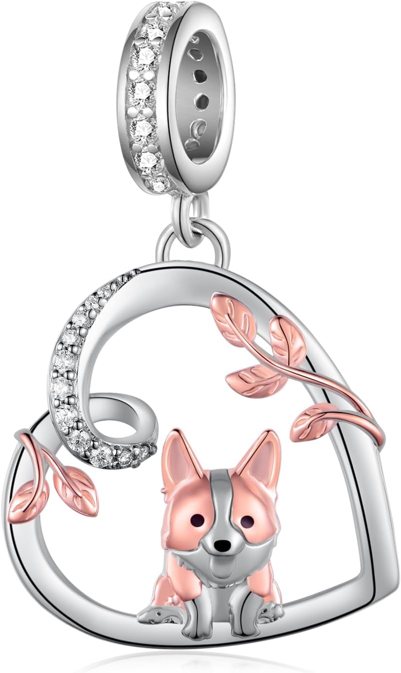 Corgi Charm 925 Sterling Silver Dog Charms for Bracelets Necklaces Cute Dog Charms for Jewelry Making Corgi Gifts for Corgi Lovers