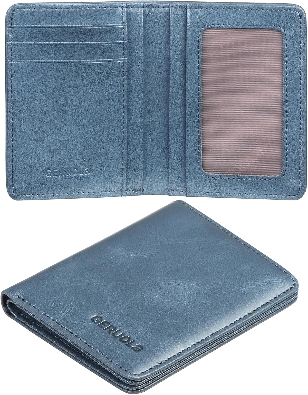 Small Vertical RFID Blocking Wallets for Men ,Bifold Slim Men Wallet Genuine Leather Thin, Compact & Stylish with Clear ID Windows