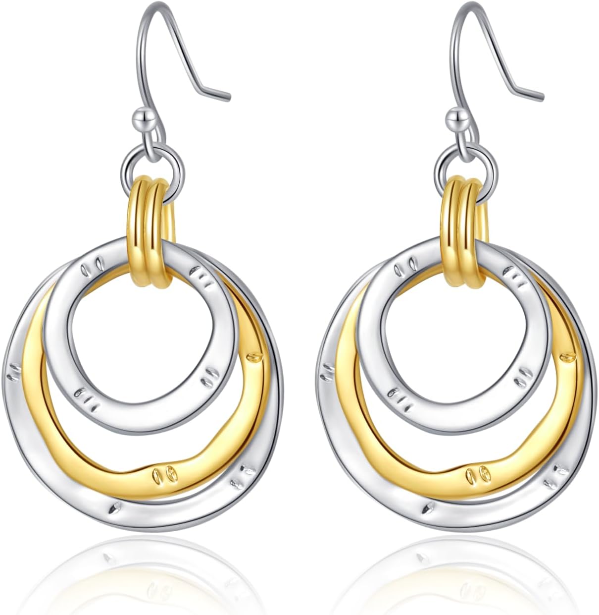 Mixed Metal Earrings, Round Circle Hoop Two Tone Dangle Earrings, Vintage Gold and Silver Geometric Earrings, Handmade Boho Earrings for Women