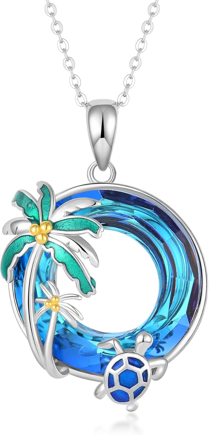 SNOWELLE Sea Turtle Necklace 925 Sterling Silver Turtle Crystal Pendant Ocean Animal Jewelry Gifts for Women