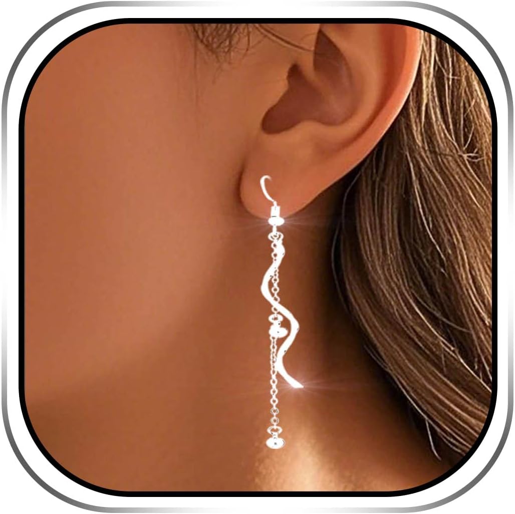 Campsis Wedding Silver Dangle Earrings, Long Spiral Earrings, Tassel Drop Earring Jewelry for Women