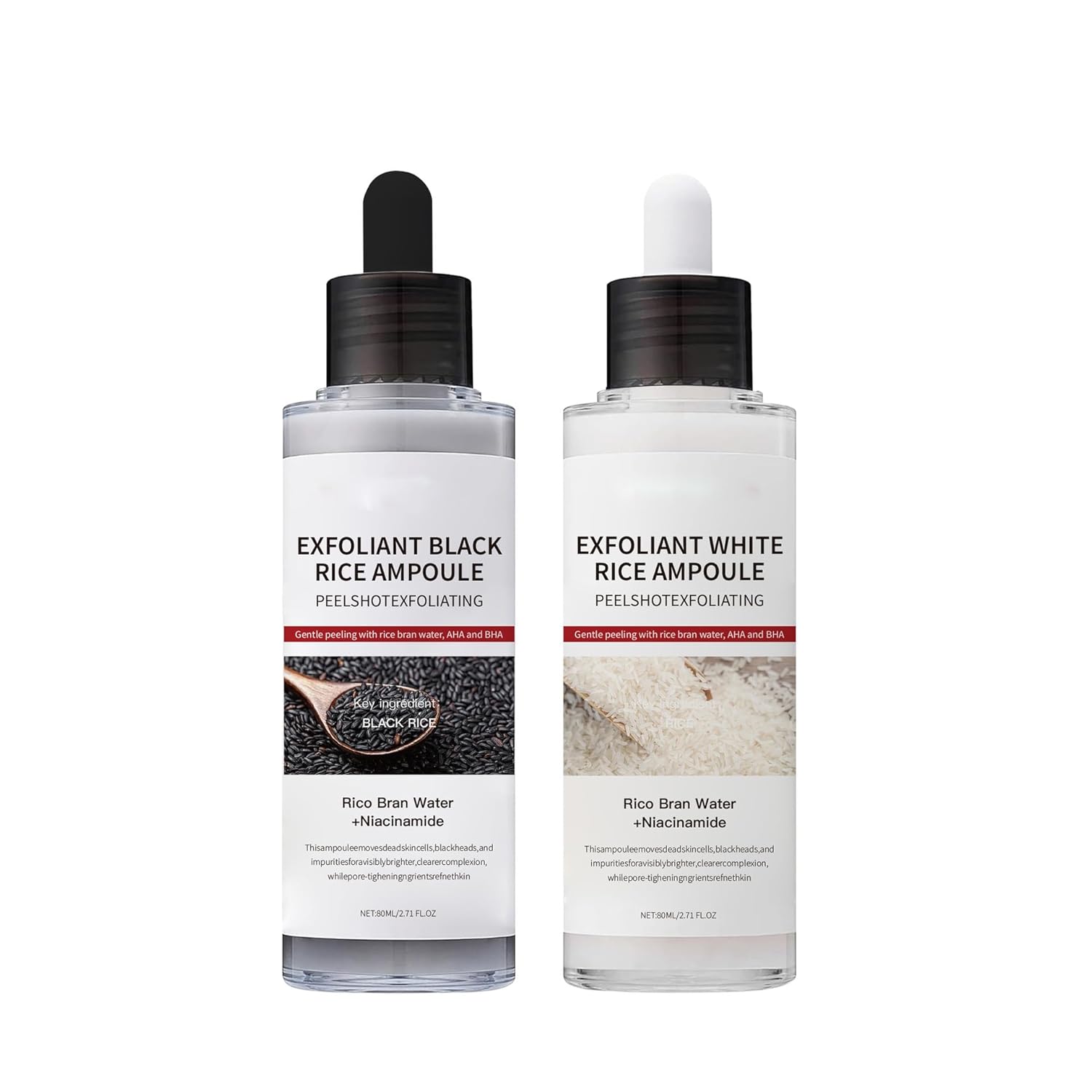 Peel Shot Glow White &Black Rice Exfoliating Set Ampoule Extract Peeling, Pore Minimizing Face & Body Scrub, Dead Skin Cell Remover Serum -80ml/2.7Fl oz