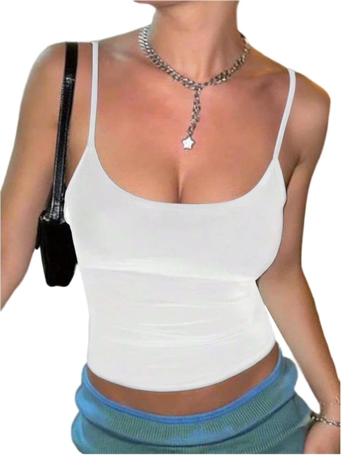 Women's Summer Scoop Neck Crop Tops Spaghetti Strap Fitted Dressy Casual Camisole Top