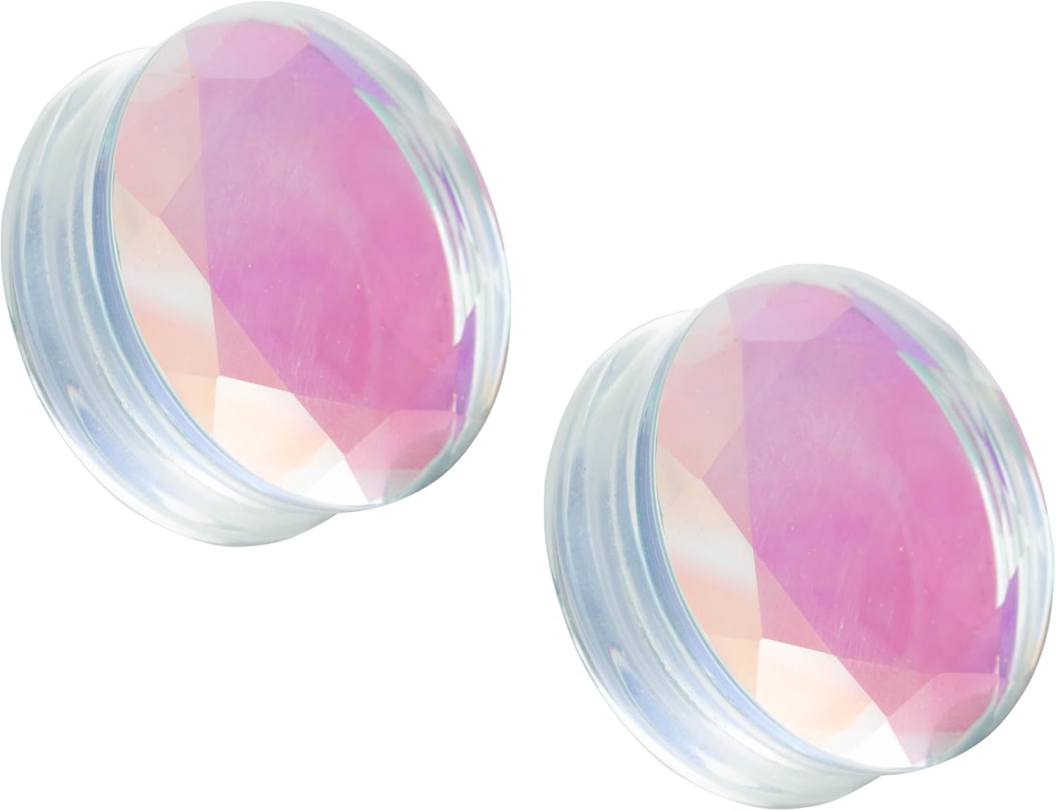 Pierced Owl Iridescent Glass Faceted Convex Double Flared Plugs, Sold as a Pair