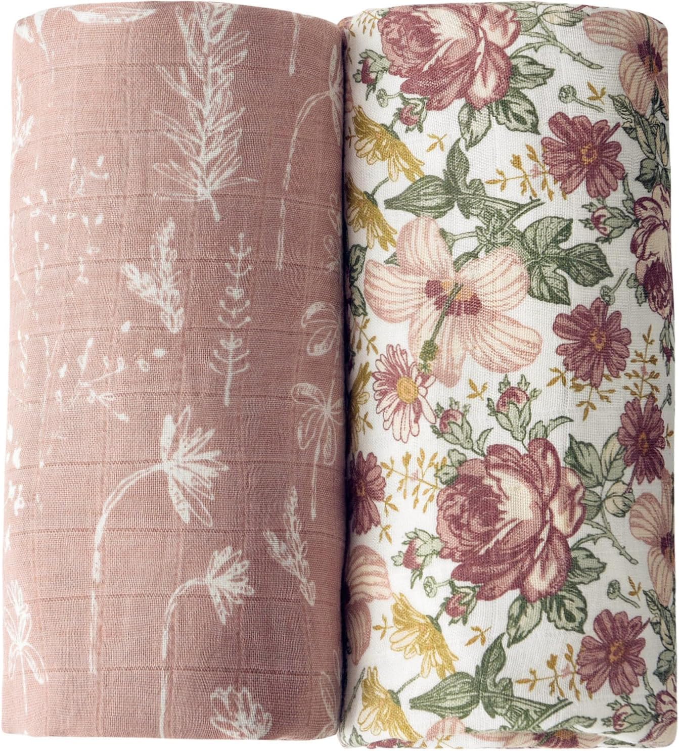 Little Jump 2 Pack Western Wild Flowers Muslin Swaddle Blankets for Baby Girls, Receiving Blanket Large 47 x 47 inches, Soft Breathable Muslin Baby Blanket for Newborn(Vintage Floral)