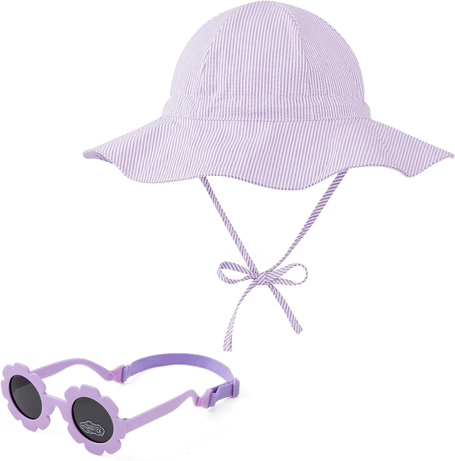 Zando UPF 50+ Wide Brim Baby Sun Hat with Sunglasses 0-12M - Sun Protection Infant Toddler Bucket Hat Adjustable for Outdoor