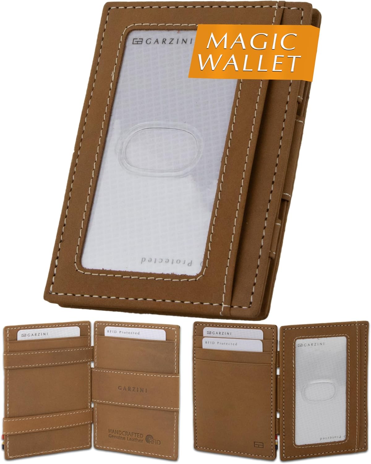 GARZINI Magic Wallet with ID Holder, Minimalist Wallet with RFID card holder, Leather Wallet for 8 cards
