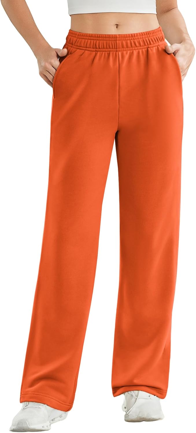 PINSPARK Women's High Waisted Straight Leg Sweatpant Comfy Interior Drawstring Workout Sweat Pants Pocket Fall Casual Pant
