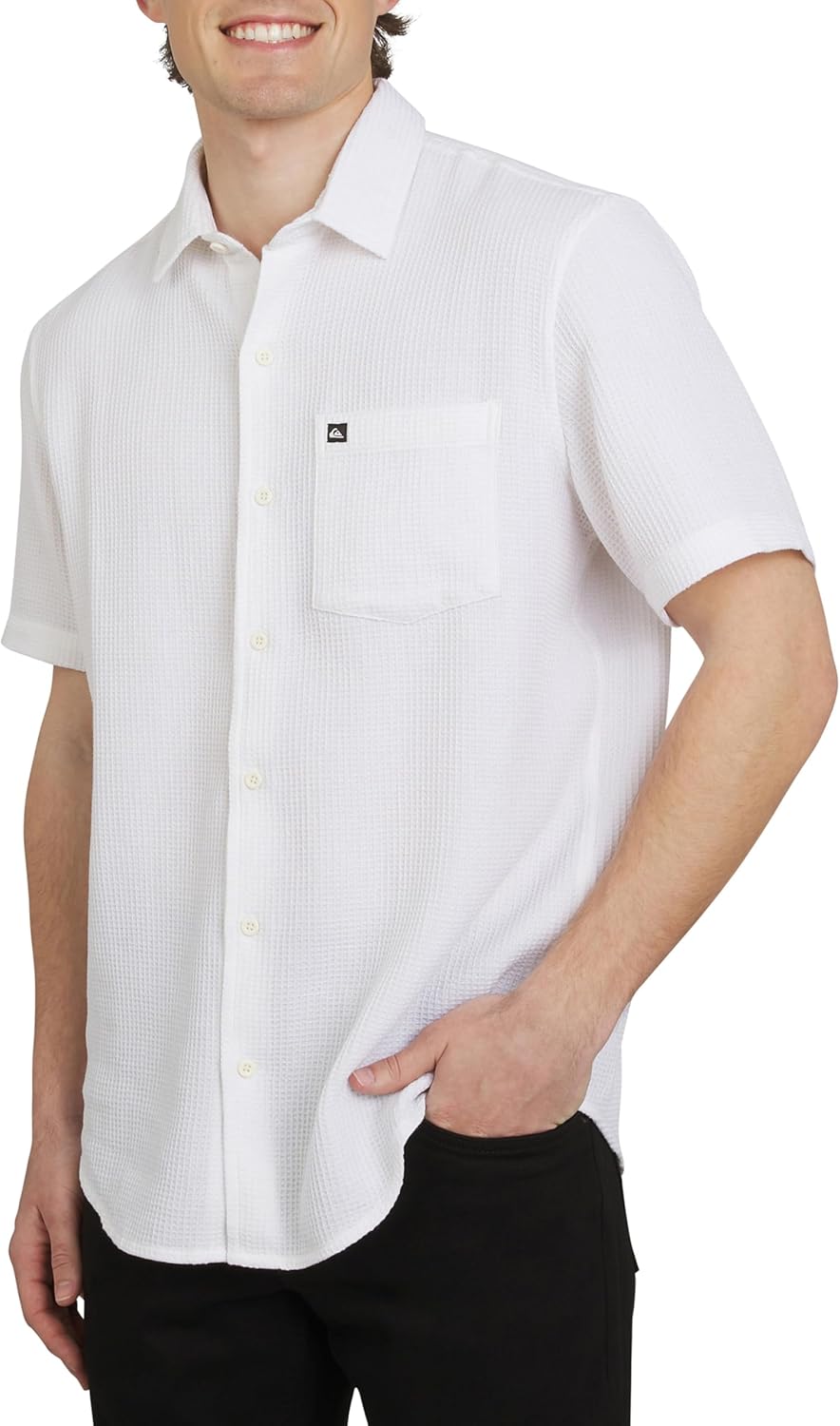 Quiksilver Men's Regular Fit Premium Cotton Short Sleeve Button Up Waffle Woven Shirt