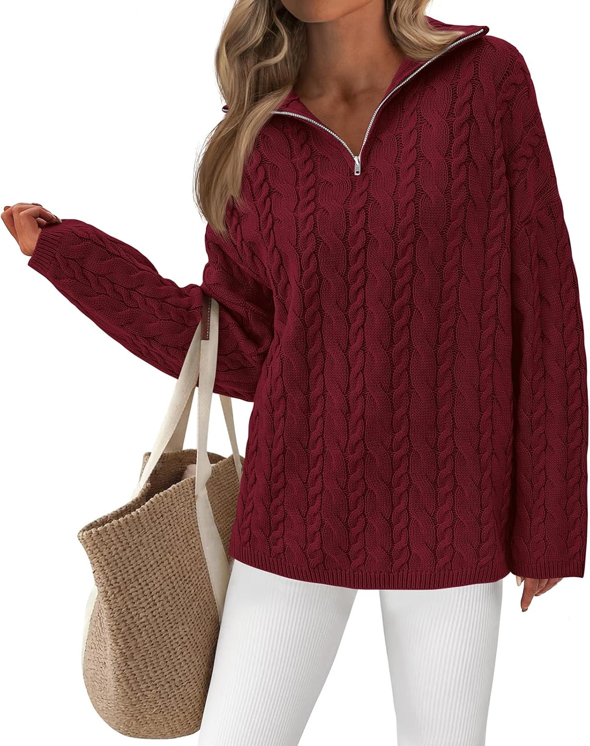 PRETTYGARDEN Womens Spring Sweaters 2026 Long Sleeve Quarter Zip Pullover Sweater Casual Loose V Neck Cable Knit Jumper Tops