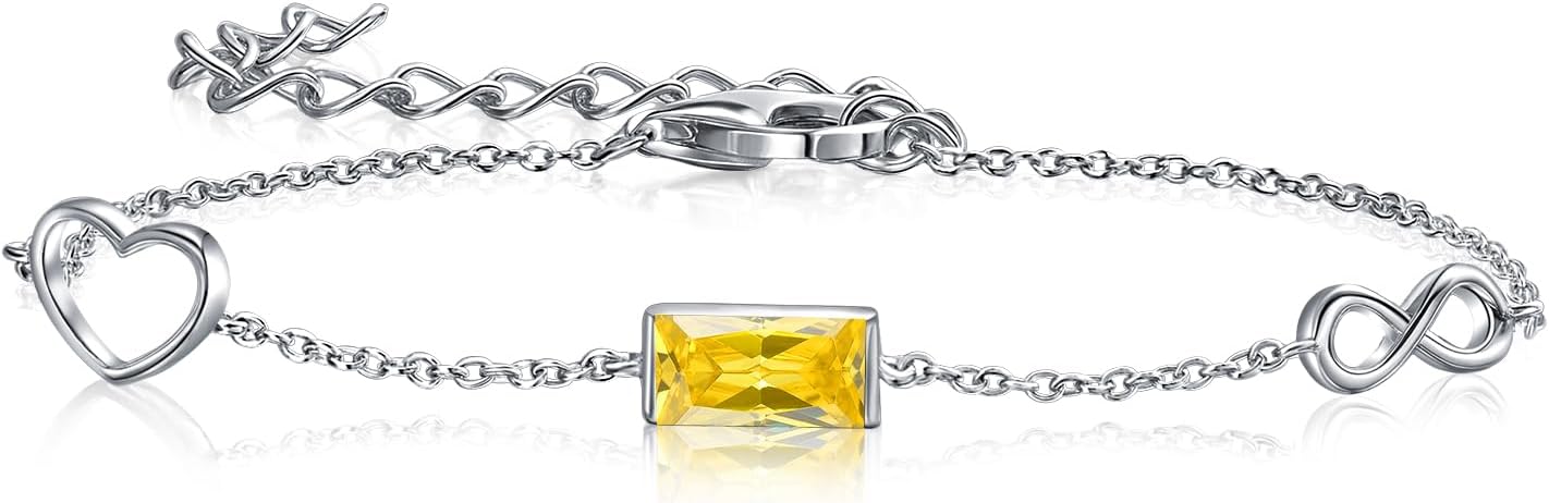 E Infinity Heart Bracelet 925 Sterling Silver Birthstone Adjustable Bracelet for Women, Friendship Birthday Anniversary Jewelry Gifts for Her Best Friend Mom Wife Girlfriend