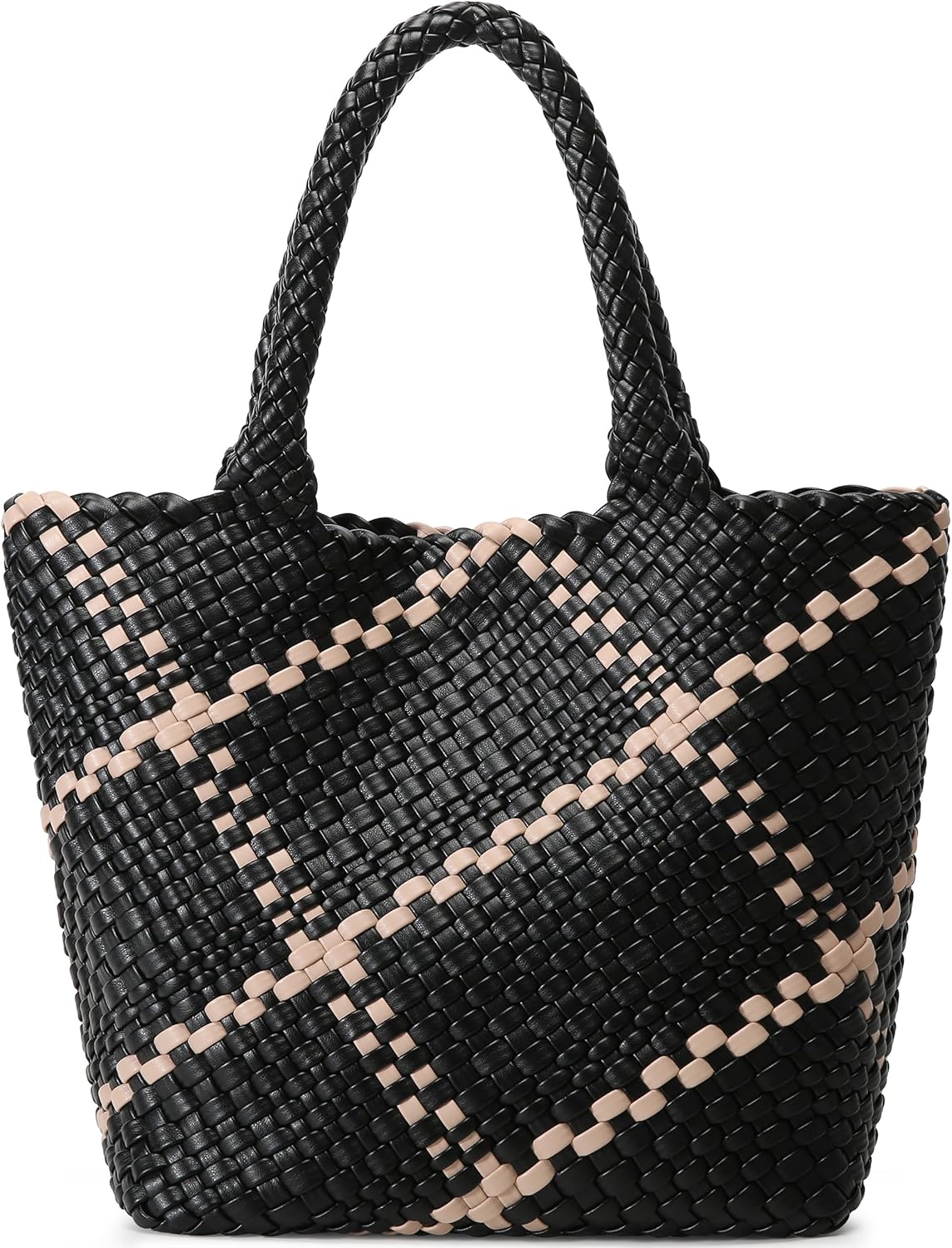 Queenoris Fashion Woven Tote Bag for Women, Shopper Bag Soft Vegan Leather Hand-woven Handbag with Purse