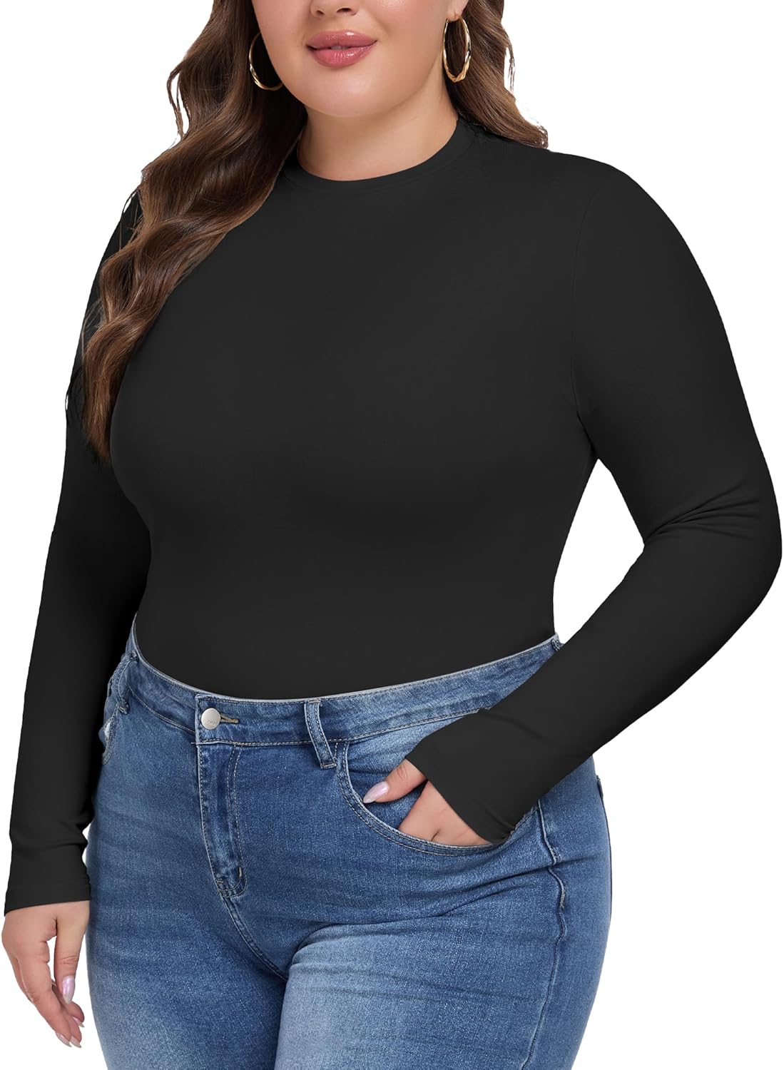 COOTRY Women's Plus Size Long Sleeve Shirts Crew Neck Slim Fitted Basic Tops Fall Clothes