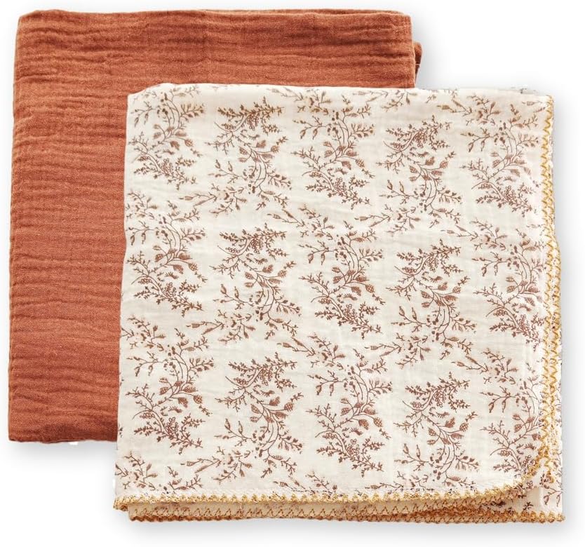 Baby Swaddle Newborn Recieving Blanket 100% Cotton Muslin 2Pack Nursery Wrap Lace Design 40"x40"