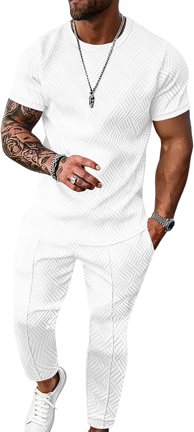 UOUA Mens 2 Piece Sweatsuit Set Short Sleeve Sweatshirt Jogging Sweatpants Tracksuits Outfits