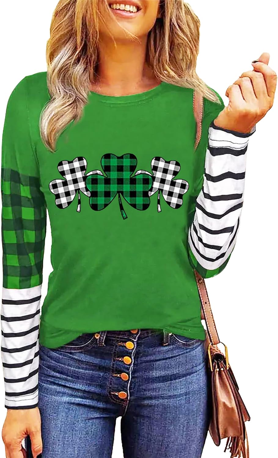 St. Patrick's Day Tshirt Women Lucky Clover Print Irish Shirt Splicing Long Sleeve Raglan Tees Baseball Tops