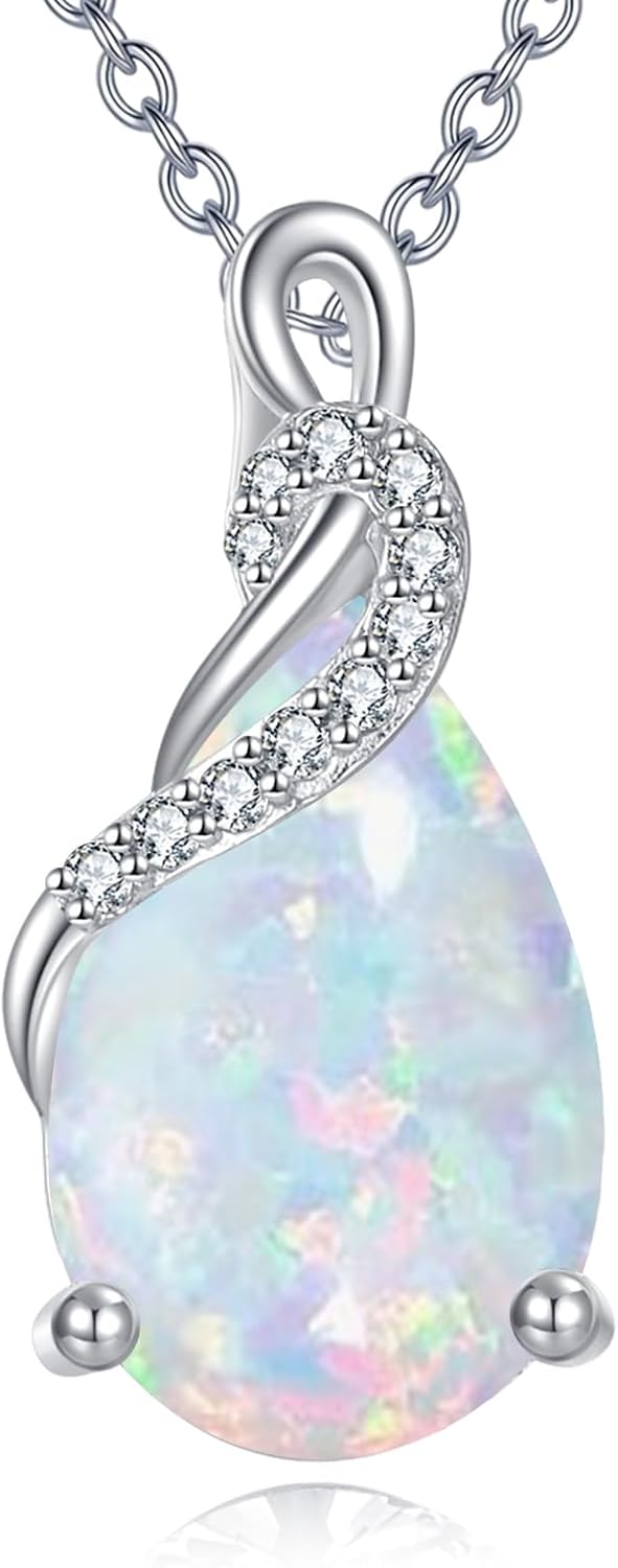 14K Real White Gold Teardrop Gemstone Necklace for Women Pear Cut Birthstone Pendant Necklaces Christmas Birthday Jewelry Gifts for Mom Wife Her, Sterling Silver Chain 18" + 2"