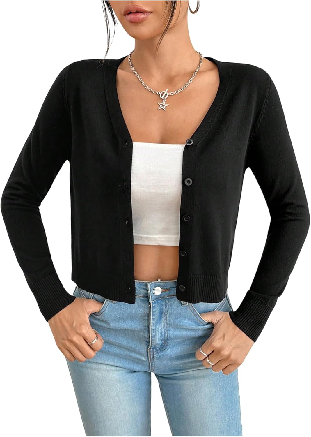 SHENHE Women's Button Up V Neck Cardigan Lightweight Long Sleeve Soft Knit Sweater Cardigan