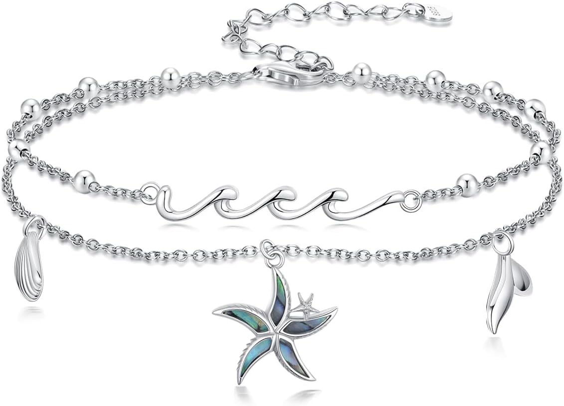 Sea Turtle/Dolphin/Starfish/Seashell/Compass Bracelet for Women 925 Sterling Silver Ocean Wave Anklet Summer Hawaiian Jewelry Gift for Her