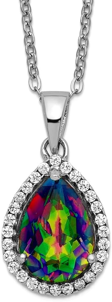 JewelryWeb 925 Sterling Silver Spring-Ring Polished Created Mystic Topaz and Cubic Zirconia Necklace 18 Inch Pendant Necklace for Women