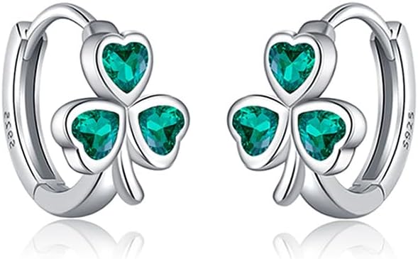 SLUYNZ 925 Sterling Silver CZ Love Clover Hoop Earrings for Women Teen Girls Green Shamrock Huggie Earrings for Summer